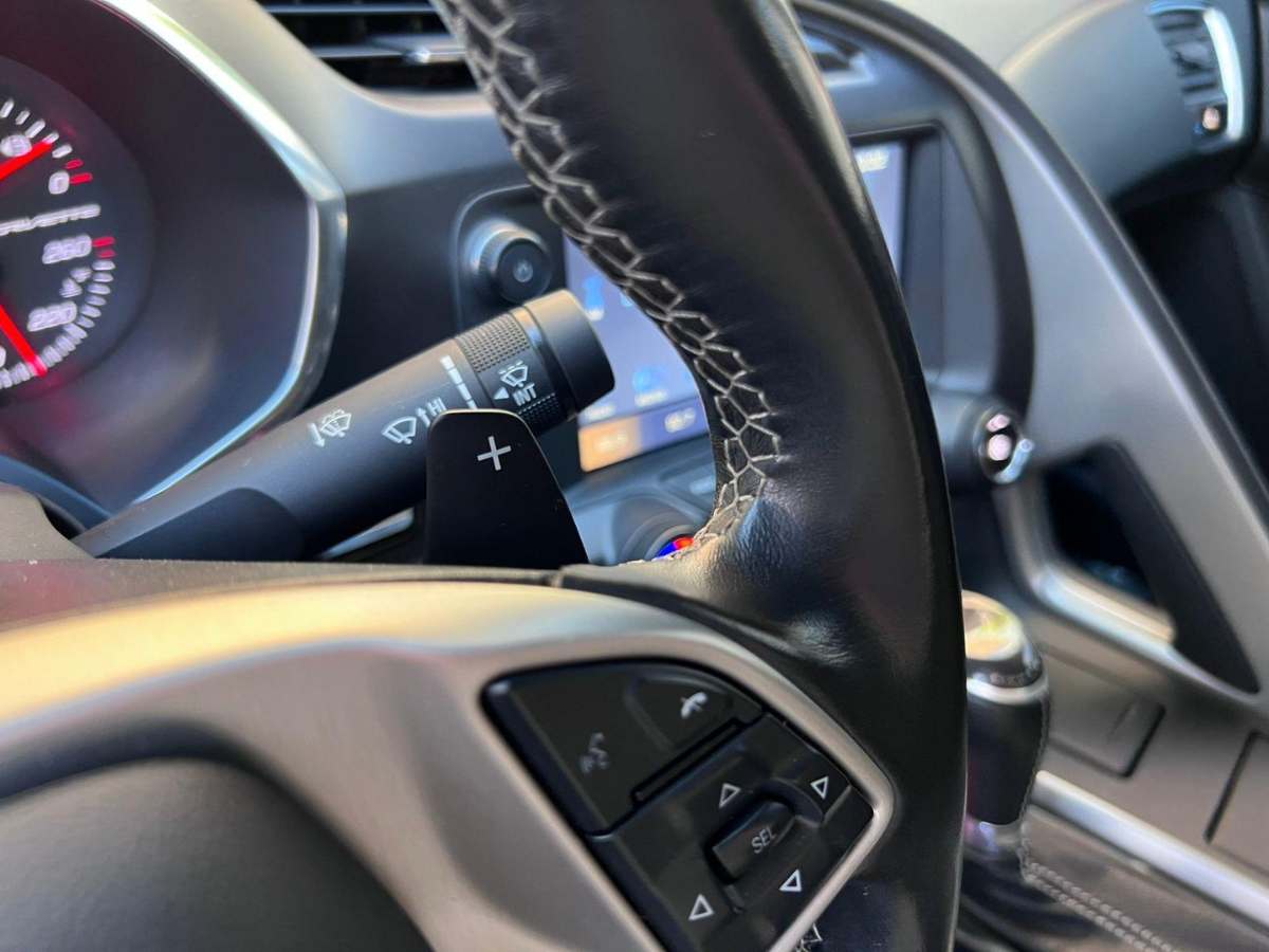 Este vehículo cuenta con mantenimiento al día y dos juegos de llaves. Está equipado con un motor de ocho cilindros 6.200 cc que entrega 460 HP, transmisión automática y tracción trasera (RWD). Incluye computador a bordo, volante multifuncional y control de velocidad crucero. Su sistema multimedia posee pantalla táctil, audio de alta fidelidad, Bluetooth, cámara de retroceso y entrada USB. El interior ofrece climatizador, asientos de cuero y techo descapotable. Además, dispone de sistema start-stop y vidrios eléctricos, complementando su diseño deportivo en color rojo con interior negro.